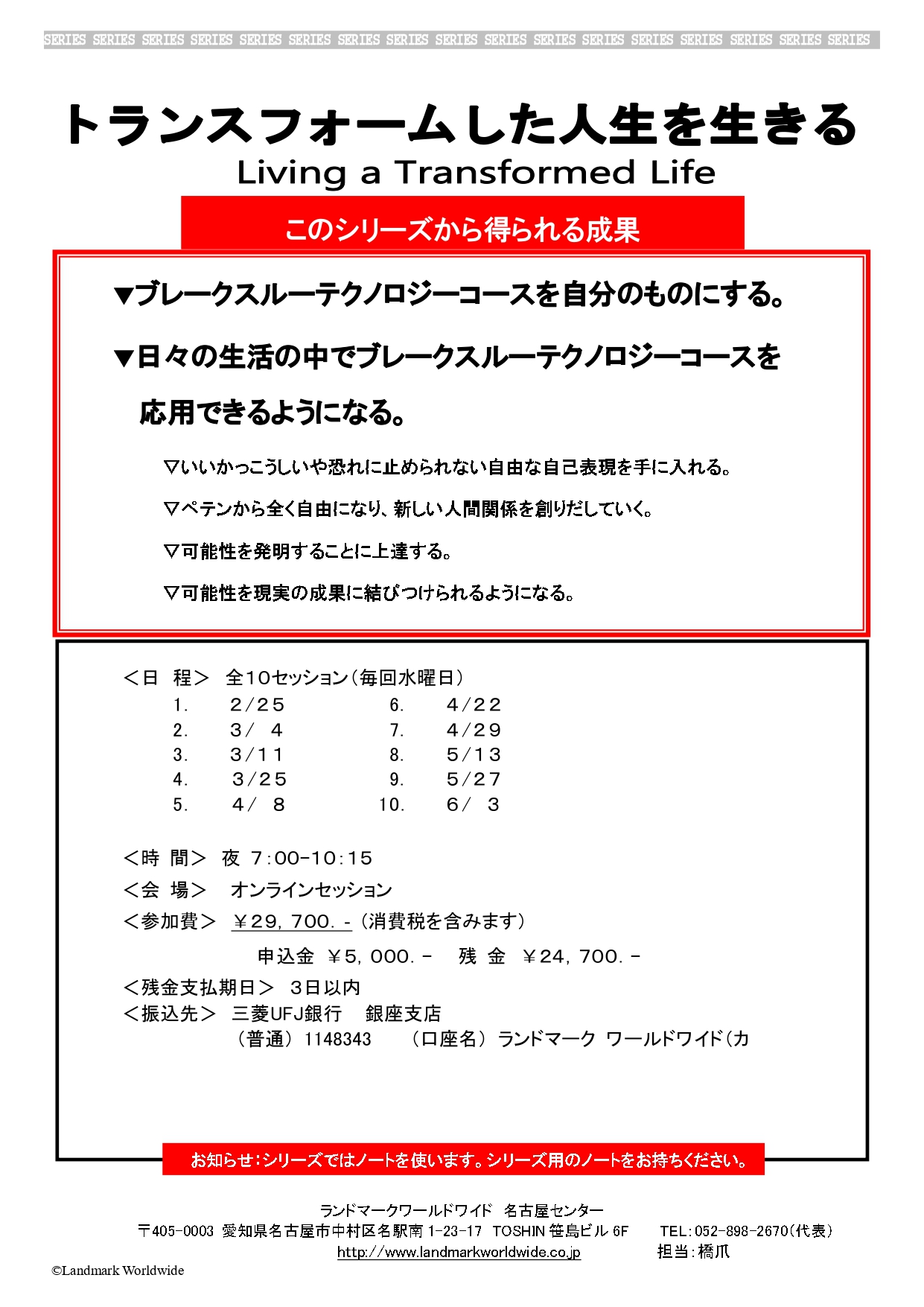 シリーズは、10回のセッションを、通常約3ヶ月間で行います。各セッションは約3時間です。