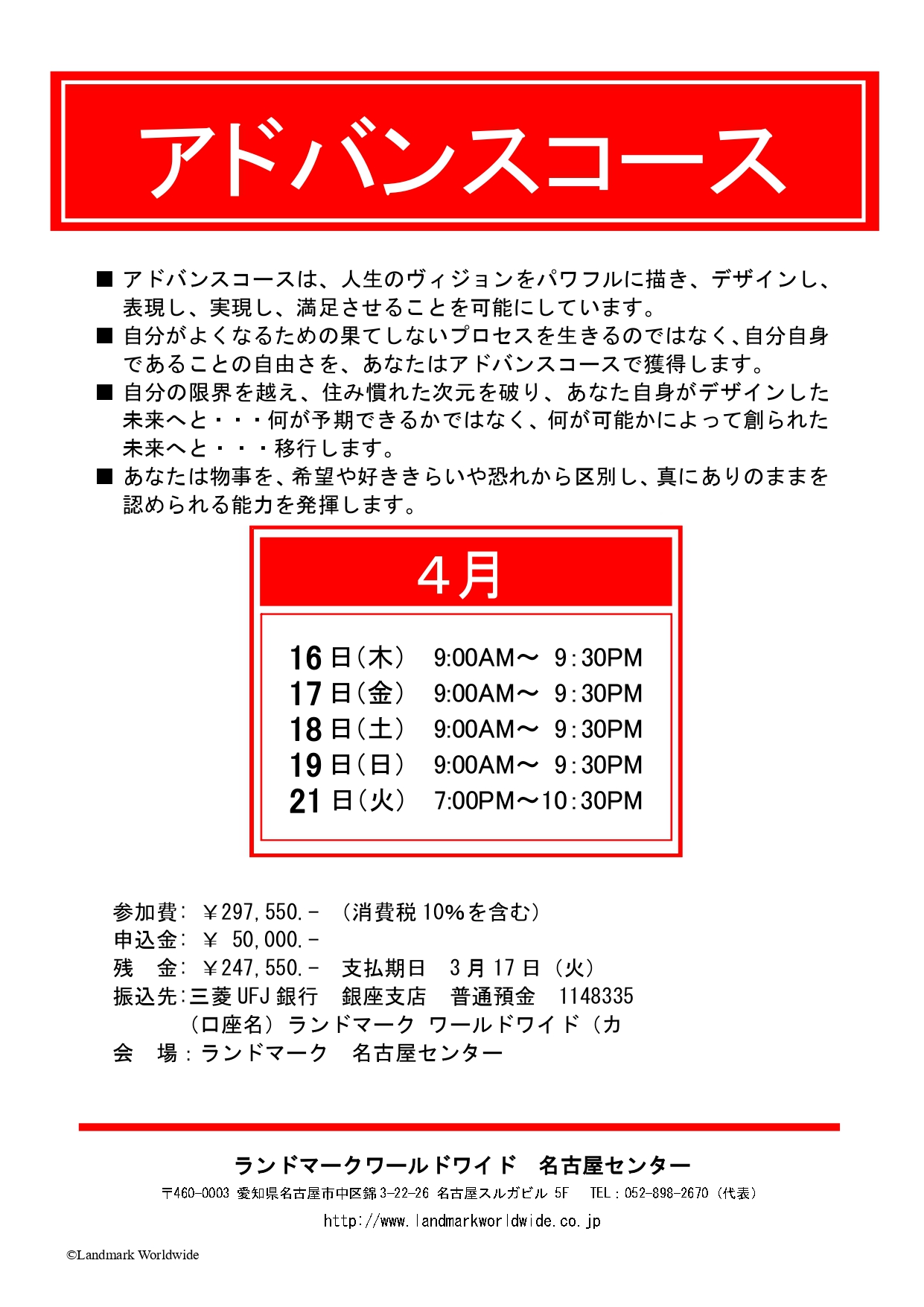 アドバンスコースは、人生のヴィジョンをパワフルに描き、デザインし、表現し、実現し、満足させることを可能にします。